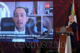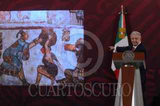 CIUDAD DE MÉXICO, 26ENERO2023.- Andrés Manuel López Obrador, presidente de México, encabezó conferencia de prensa matutina en Palacio Nacional. El presidente estuvo acompañado de: Elizabeth García Vilchis, directora de Redes de la Coordinación General de Comunicación Social y Vocería de Presidencia. FOTO: MARIO JASSO/CUARTOSCURO.COM