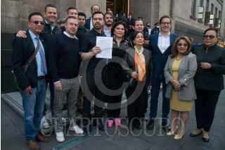 CIUDAD DE MÉXICO, 15MARZO2023.- Jorge Álvarez Máynez, diputado y coordinador de Movimientos Ciudadano, junto a sus compañeros de bancada: Amalia García; Ivonne Ortega, y Salomón Chertorivski; acudieron a la Suprema Corte de Justicia de la Nación (SCJN) a presentar una demanda de acción de inconstitucionalidad en contra del plan B de la Reforma Electoral. FOTO: MARIO JASSO/CUARTOSCURO.COM