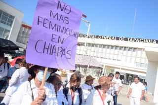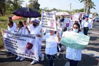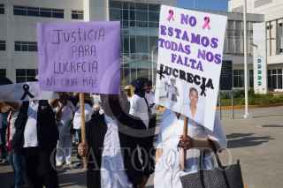 TAPACHULA, CHIAPAS, 15MARZO2023.- Personal del Hospital General de Tapachula se manifestaron en oficinas de la Fiscalía General del Estado de Chiapas, para exigirle a las autoridades el esclarecimiento del feminicidio de Lucrecia Salva Fuentes. La víctima de 53 años de edad fue hallada muerta, en un camino de terracería con un balazo en la cabeza. FOTO: DAMIÁN SÁNCHEZ/CUARTOSCURO.COM