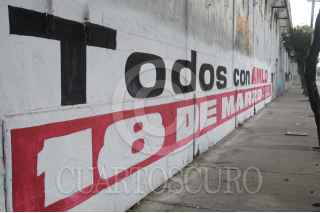 CIUDAD DE MÉXICO, 15MARZO2023.- Con carteles y mensajes en distintas bardas de la capital se promueve la concentración del próximo sábado en el Zócalo capitalino por el 85 aniversario de la Expropiación Petrolera, la cual estará encabezada por el presidente de México, Andrés Manuel López Obrador. FOTO: DANIEL AUGUSTO /CUARTOSCURO.COM