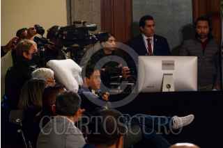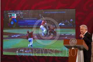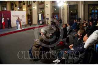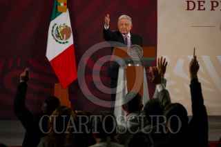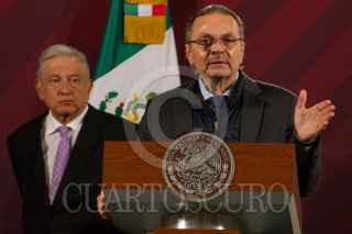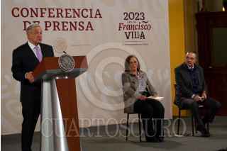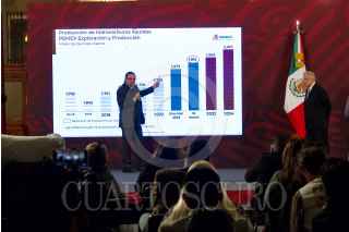 CIUDAD DE MÉXICO, 17MARZO2023.- Andrés Manuel López Obrador, presidente de México, Octavio Romero, titular de Petróleos Mexicanos y Rocío Nahle, titular de la Secretaría de Energía, durante la conferencia matutina desde el Salón Tesorería de Palacio Nacional. FOTO: ROGELIO MORALES /CUARTOSCURO.COM