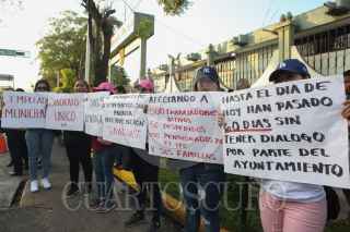 VILLAHERMOSA, TABASCO, 17MARZO2023.- Grupos de personas a las afueras de la 30 Zona Militar, se manifiestan con cartulinas y pancartas pidiendo la intervención del presidente Andrés Manuel López Obrador, quien está ofreciendo la mañanera en el interior del Campo Militar. De Minatitlán, Veracruz, un grupo del sindicato, SUEM, cumplen 60 días de huelga y paro de labores en contra de la alcaldía que preside la Dra. Carmen Medel Palma los violenta y no respeta su contrato de trabajo, como también les adeuda dos meses de salario. Así mismo, del municipio de Teapa, Tabasco, grupo de pobladores, denuncia que la CONAVI les está robando, ya que les quieren proporcionar casas dúplex para reubicarlos por estar en derecho de vía, lo cual no estaba acordado. FOTO: CARLOS CANABAL OBRADOR/CUARTOSCURO.COM