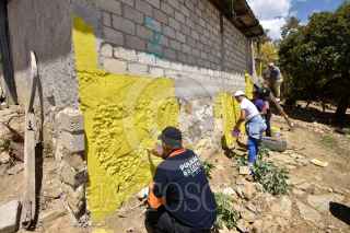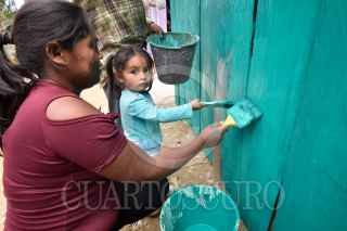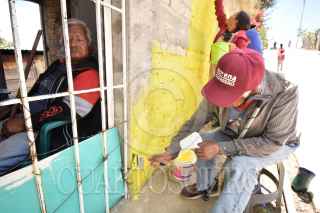 CHILPANCINGO, GUERRERO, 17MARZO2023.- Como parte de las actividades de la campaña “Comunidades del Bienestar con Felicidad” para mejorar el desarrollo comunitario que está implementando la Secretaría de Desarrollo y Bienestar Social del estado de Guerrero, con el que buscan mejorar el entorno de las comunidades pintando fachadas y canchas deportivas, instalando juegos, rescatando espacios de esparcimiento social y áreas verdes, además de implementar el programa de 'Alimentación Sustentable' en las comunidades. La titular de la Secretaría del Bienestar, Maricarmen Cabrera Lagunas, visito la comunidad de El Miraval, ubicada en la zona serrana del municipio de Eduardo Neri (Zumpango) en la región Centro del estado de Guerrero, donde, acompañada de autoridades locales y representantes de la empresa minera 'Media Luna' dieron el banderazo de arranque del programa “Transformando Nuestro Entorno” el cual consiste en pintar las fachadas de los hogares de la localidad, para esto, la minera, donó para esta primera localidad más de 60 cubetas de pintura. FOTO: DASSAEV TÉLLEZ ADAME/CUARTOSCURO.COM