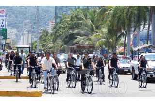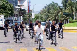 ACAPULCO, GUERRERO 29MARZO2007.- El alcalde Félix Salgado realizo un recorrido por la costera Miguel Alemán luego de entregar 20 bicicletas a policias municipales para que vigilen esa franja costera. FOTO: ERIC MIRALRIO/CUARTOSCURO.COM