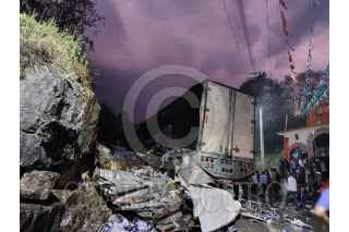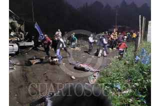 OXCHUC, CHIAPAS, 17MARZO2023.- Un tráiler que presuntamente se quedó sin frenos arrastró varios automóviles provocando la muerte de una persona y 25 heridos de acuerdo a los informes de la Secretaría de Protección Civil. El accidente fue registrado en la autopista federal San Cristóbal-Ocosingo en el municipio de Oxchuc. FOTO: CUARTOSCURO.COM