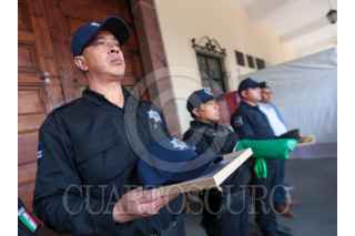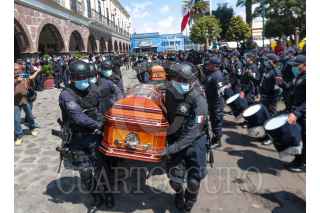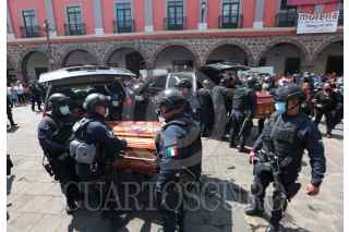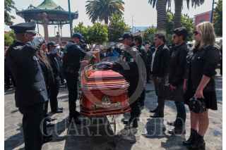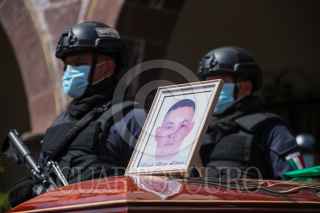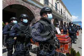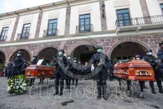 TENANGO DEL VALLE, ESTADO DE MÉXICO, 18MARZO2023.- Realizan homenaje de cuerpo presente a los dos policías que murieron durante un enfrentamiento con presuntos integrantes del CJNG en Tenango del Valle, quienes mantenían privadas de su libertad a 4 personas; y después de una persecución fueron detenidos en la CDMX en donde otro policía murió l enfrentarlos. FOTO: CRISANTA ESPINOSA AGUILAR /CUARTOSCURO.COM