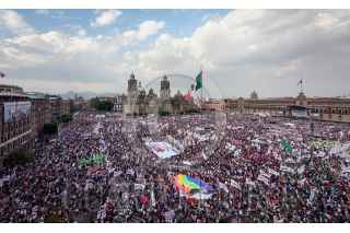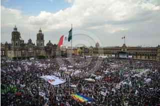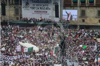 CIUDAD DE MÉXICO, 18MARZO2023.- Miles de simpatizantes acudieron al zócalo capitalino con motivo de la celebración de de los 85 años de la expropiación petrolera. FOTO: MARIO JASSO/CUARTOSCURO COM