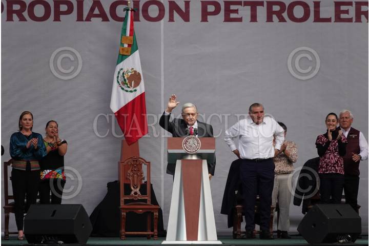 CIUDAD DE MÉXICO, 18MARZO2023.- Andrés Manuel López Obrador, presidente de México, encabezó la celebración del 85 Aniversario de la Expropiación Petrolera, realizada en el Zócalo capitalino. FOTO: GRACIELA LÓPEZ/CUARTOSCURO.COM