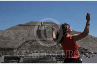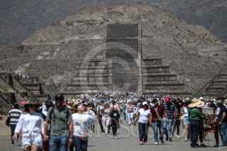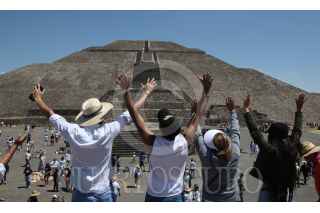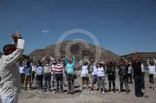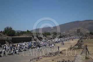 CIUDAD DE MÉXICO, 20MARZO2023.- Cientos de turistas se dieron cita en la zona arqueológica de Teotihuacán vestidos de blanco (la mayoría) para recibir el solsticio de primavera. FOTO: ANDREA MURCIA /CUARTOSCURO.COM