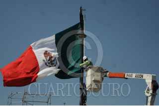 CIUDAD DE MÉXICO, 20MARZO2023.- Un trabajador de obras de la capital revisa la luminaria de la plancha del Zócalo. FOTO: DANIEL AUGUSTO /CUARTOSCURO.COM