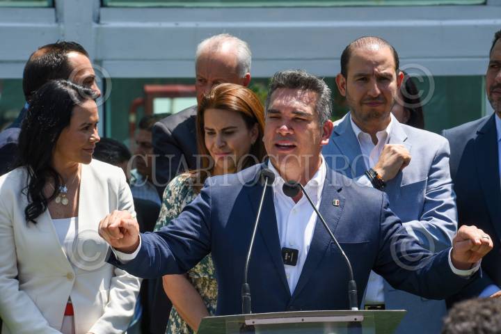 TOLUCA, ESTADO DE MÉXICO, 21MARZO2023.- Alejandra del Moral Vela después de realizar su registro candidatura para la gubernatura del periodo 2023-2029 por la Coalición Va por el Estado de México ofreció un mensaje en el patio del Instituto Electoral del Estado de México. FOTO: CRISANTA ESPINOSA AGUILAR /CUARTOSCURO.COM