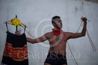 SAN CRISTÓBAL DE LAS CASAS, CHIAPAS, 21MARZO2023.- La compañía de teatro Circo Plantae presentó su puesta en escena Nagasi en La Enseñanza Casa de la Ciudad. Con la dirección de Jade Zerón, el actor David Orozco experimenta con el público y con el mismo el concepto, teoría y práctica de las masculinidades. FOTO: ISABEL MATEOS/CUARTOSCURO.COM
