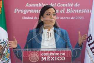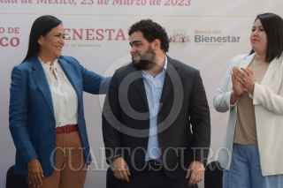 CIUDAD DE MÉXICO, 23MARZO2023.- Victor Manuel Lamoyi, director general del Banco del Bienestar; Ariadna Montiel, secretaria del Bienestar; Juan Pablo de Botton, subsecretario de egresos de la Secretaría de Hacienda y Crédito Público (SHCP) y Estefany Correa, delegada de Programas para el Bienestar en la Ciudad de México, encabezaron la inauguración de la sucursal del Banco de Bienestar en avenida Constituyentes 1001, y la Asamblea de Conformación de Comités de Programas para el Bienestar. FOTO: MARIO JASSO/CUARTOSCURO.COM