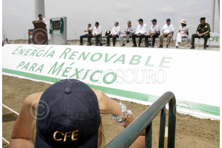 JUCHITÁN DE ZARAGOZA, OAXACA, 29MARZO2007.- Ulises Ruíz, gobernador de Oaxaca y Felipe Calderón Hinojosa, presidente de la República, pusieron en marcha la central Eolica La Venta II en la región del Itsmo. FOTO: CARLOS SALINAS/CUARTOSCURO.COM