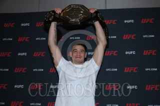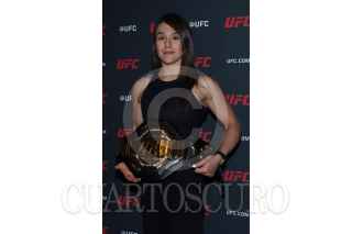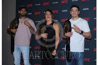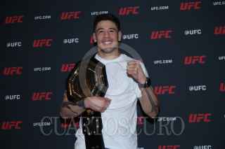 CIUDAD DE MÉXICO, 23MARZO2023.- Conferencia de prensa con los tres campeones mexicanos de la UFC, Alexa Grasso, Brandon Moreno y Yair Rodríguez en la Ciudad de México. FOTO: EDGAR NEGRETE LIRA/CUARTOSCURO.COM