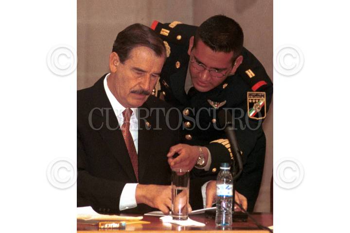 Jorge G. Castañeda, el presidente Vicente Fox y Enrique Berruga durante la XII Reunión de Diplomaticos Mexicanos en Palacio Nacional. FOTO: Christian Palma/CUARTOSCURO.COM