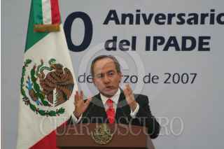 MÉXICO, D.F. MARZO2007.- El presidente Felipe Calderón visitó el Instituto Panamaericano de Alta Dirección de Empresa en su 40 aniversario. En la imagen con Carlos Garciarce Ramírez presidente de la junta de gobierno de dicha institución. FOTO: PAOLA HIDALGO/CUARTOSCURO.COM