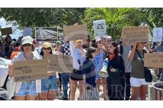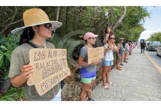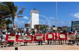 PUERTO MORELOS QUINTANA ROO, 25MARZO2023.- Opositores al Tren Maya, acompañados de niños, formaron una cadena humana en la zona de manglar de Puerto Morelos este sábado; con pancartas en mano, gritaban consignas contra el proyecto y a favor del medio ambiente. FOTO: ELIZABETH RUIZ /CUARTOSCURO.COM