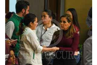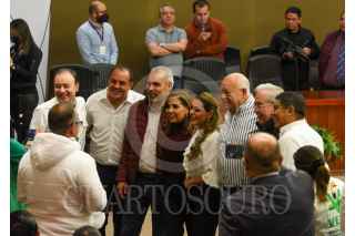 TOLUCA, ESTADO DE MÉXICO, 26MARZO2023.- Martha Guerrero, líder estatal de MORENA, Higinio Martínez, Karen Castrejón presidenta nacional del PVEM y gobernadores como Cuauhtémoc Blanco de Morelos, Evelyn Salgado de Guerrero, Salomón Jara de Oaxaca, Alfredo Ramírez Bedolla de Michoacán, Alfonso Durazo de Sonora, Víctor Manuel Castro Cosío de BCS, María Elena Lezama, Quintana Roo, Layda Sansores de Tabasco y Claudia Sheinbaum de la CDMX acudieron como invitados especiales al registro de Delfina Gómez Álvarez solicitó su registro de su candidatura para la gubernatura del periodo 2023-2029 por la coalición “Juntos Hacemos Historia por el Estado de México” conformada por MORENA, PVEM y PT. FOTO: CRISANTA ESPINOSA AGUILAR /CUARTOSCURO.COM
