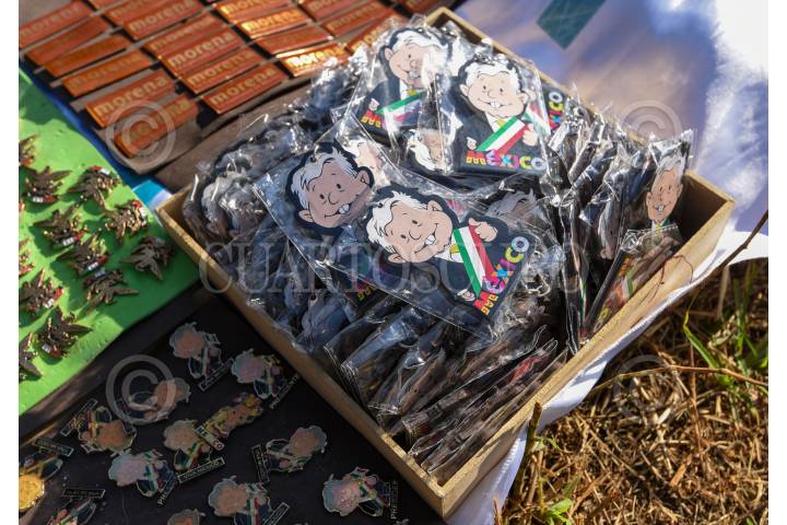 TOLUCA, ESTADO DE MÉXICO, 23MARZO2023.- En las inmediaciones del IEEM esperaron morenistas mientras se solicitaba el registro de Delfina Gómez como candidata para la gubernatura del periodo 2023-2029 por la coalición “Juntos Hacemos pa Historia por el Estado de México”, también se dio la venta de “delfinitas” de peluche así como “Amlitos” llaveros, y otros accesorios. FOTO: CRISANTA ESPINOSA AGUILAR /CUARTOSCURO.COM