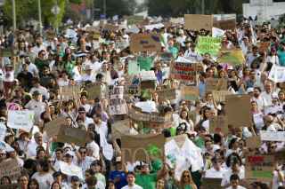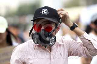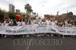 MONTERREY, NUEVO LEÓN, 26MARZO2023.- Integrantes del movimiento "Yo respiro Monterrey" y del Comité Ecológico Interescolar, organizaron una marcha en el centro de la ciudad para exigir acciones y mejorar el aire en la zona metropolitana de Monterrey, así como buscar soluciones para dar prioridad al transporte público. FOTO: GABRIELA PÉREZ MONTIEL / CUARTOSCURO.COM