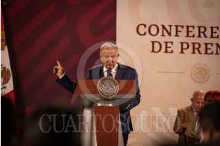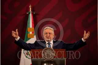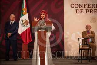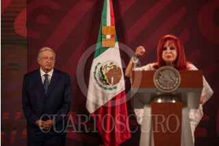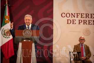 CIUDAD DE MÉXICO, 27MARZO2023.- El presidente de la República, Andres Manuel López Obrador, durante la conferencia matutina diaria. El mandatario estuvo acompañado por Diego Prieto, director general del Instituto Nacional de Antropología e Historia y por Layda Sansores San Román, gobernadora de Campeche. FOTO: PEDRO ANZA /CUARTOSCURO.COM