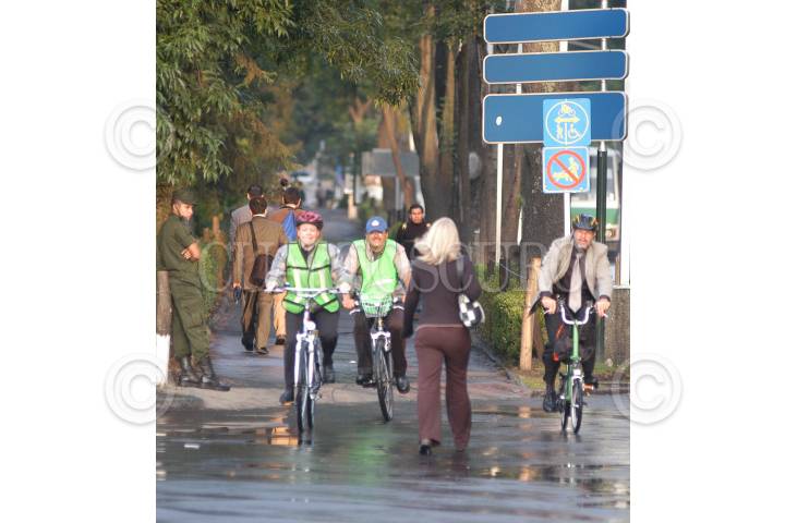 MÉXICO D.F. 02ABRIL2007.- Funcionarios del Gobierno del Distrito Federal realizaron en bicicleta el recorrido de su casa a las oficinas del GDF. Martha Delgado, secretaria del medio ambiente, realizo su recorrido en la ciclopista entre peatones. FOTO: GERMÁN ROMERO/CUARTOSCURO.COM
