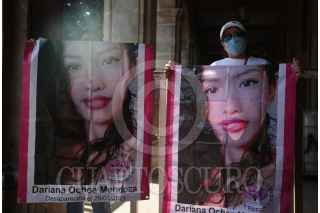 CUERNAVACA, MORELOS, 27MARZO2023.- Integrantes del Colectivo de Familias Resilientes, en conferencia de prensa realizada en el Memorial a la Victimas en la puerta principal del Palacio de gobierno, denunciaron que el Fiscal de Justicia, Uriel Carmona Gándara, y el coordinador general de Servicios Periciales, Samuel Nava, y funcionarios que en el ámbito de sus funciones compete, son responsables directos de una serie de omisiones y negligencias en el caso de varias diligencias en fosas clandestinas de Yecapixtla y Zacatepec, además de acusar que es común la práctica en la Fiscalía de revictimizar a las familias de las personas desaparecidas. FOTO: MARGARITO PÉREZ RETANA / CUARTOSCURO.COM