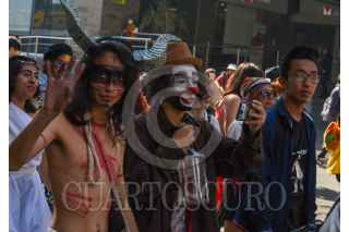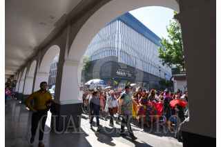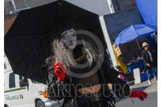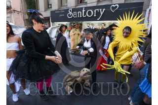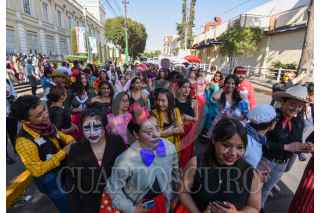 TOLUCA, ESTADO DE MÉXICO, 27MARZO2023.- Estudiantes de las Licenciaturas de Artes Teatrales de la Facultad de Humanidades, Danza de la Escuela de Artes Escénicas de la UAEMÉX y la Licenciatura en Educación en Artes Escénicas de la Escuela de Bellas Artes de Toluca tomaron las calles de la capital mexiquense con el tradicional desfile conmemorativo del Día Mundial del Teatro, partiendo del edificio de Rectoría y concluyeron en el Teatro Universitario “Los Jaguares”, invitaron a la población a acudir al teatro y disfrutar de las diferentes obras que se ofrecen. FOTO: CRISANTA ESPINOSA AGUILAR /CUARTOSCURO.COM