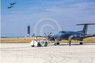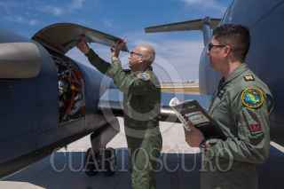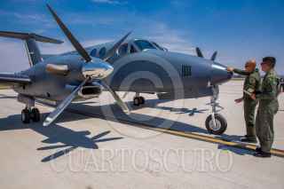 BASE AÉREA DE SANTA LUCÍA, ESTADO DE MÉXICO 27MARZO2023.- Las Secretarías de la Defensa y Agricultura iniciaron el programa de "Estimulación de lluvias para el Sistema Cutzamala". El objetivo de este proyecto es reabastecer los mantos acuíferos en un polígono de 438 mil 809 hectáreas, que comprenden el Estado de México y su límite con el Estado de Michoacán. Este lunes se sostuvo la primera reunión de trabajo con elementos de de la Fuerza Aérea Mexicana para establecer las coordenadas del área que se pretende impactar. El programa busca combatir los efectos de la temporada de sequía, e incrementar en 25 por ciento la captación de agua de lluvia en el sistema de presas del Cutrzamala. Será operado con la colaboración de una aeronave King Air 350i de la Fuerza Aérea Mexicana. FOTO: JUAN PABLO ZAMORA/CUARTOSCURO.COM