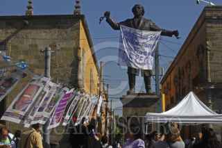 GUADALAJARA, JALISCO, 28MARZO2023.- Esta mañana en Plaza de la Liberación en el centro de la ciudad, la agrupación de las Paritaristas en compañía de algunas madres de familia, instalaron tendederos para exhibir a deudores alimenticios, esto con la finalidad de que exista un padrón en la entidad que los obligue a cumplir sus responsabilidades. FOTO: FERNANDO CARRANZA GARCIA / CUARTOSCURO.COM
