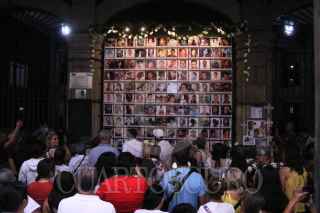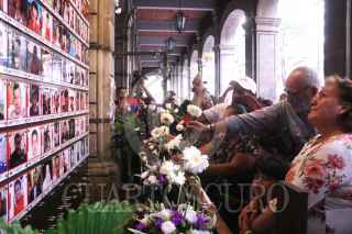 CUERNAVACA, MORELOS, 28MARZO2023.- Conmemoración del Día Estatal de las Victimas en la ofrenda instalada en los portales del Palacio de Gobierno de Morelos. La comisionada de atención a víctimas Penélope Picazo, encabezo el evento que busca dignificar el espacio que desde hace doce años es usado por colectivos de búsqueda para exigir justicia. En esta ocasión se imprimieron las fotos de las víctimas de desaparición, feminicidio y homicidio. Durante el evento participaron colectivos de búsqueda de desaparecidos que desde hace más de una década buscan a sus seres queridos. Amalia Hernández, tía de Oliver Wenceslao, cuyo cadáver fue enterrado en la fosa irregular que el gobierno de Graco Ramírez tenía en el panteón de Tetelcingo, donde se inhumaron más de cien cadáveres sin protocolo de identificación critico fuertemente al gobierno actual pues esta situación es responsabilidad del Estado, y el gobernador Cuauhtémoc Blanco Bravo ha sido insensible y omiso pues no ha acatado dos recomendaciones emitidas por la Comisión Nacional de Derechos Humanos sobre el caso. FOTO: MARGARITO PÉREZ RETANA / CUARTOSCURO.COM
