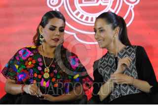 CIUDAD DE MÉXICO, 28MARZO2023. - Claudia Sheinbaum, jefa de gobierno de la capital, realizó el Pase de Estafeta a la gobernadora de Guerrero, Evelyn Salgado, debido a que la próxima edición del Tianguis Turístico se llevará a cabo en Acapulco. FOTO: DANIEL AUGUSTO /CUARTOSCURO.COM