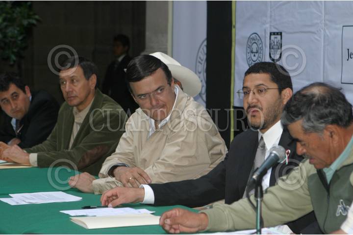 MÉXICO D.F. 02ABRIL2007.- Zaisheng Wei vicepresidente de la compañia china ZTE Corporation y el Jefe de gobierno Marcelo Ebrard recibe un presente del funcionario chino al termino de la firma de convenio de para instalar internet inalambrico en escuelas y dependencias de gobierno. FOTO: SAUL LÓPEZ/CUARTOSCURO.COM
