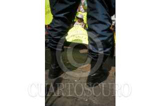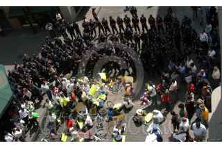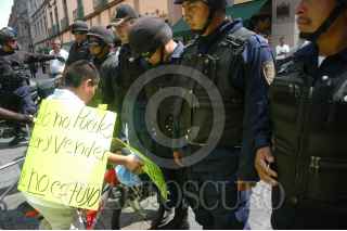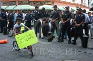 MÉXICO D.F. 02ABRIL2007.-Elementos de la secretaria de seguridad del D.F. impidierón el paso a manifestantes que protestaban encontra de la expropiación del predio conocido como el numero 40 en Tepito, estos en las calles de Madero y Gante en la colonia Centro. FOTO: GUILLERMO PEREA/CUARTOSCURO.COM