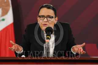 CIUDAD DE MÉXICO, 29MARZO2023.- Rosa Icela Rodríguez, titular de la SSPC, realizó una conferencia de prensa para informar sobre los avances en el caso de los 39 migrantes qué murieron en el incendio de una estación de migración. FOTO: DANIEL AUGUSTO /CUARTOSCURO.COM