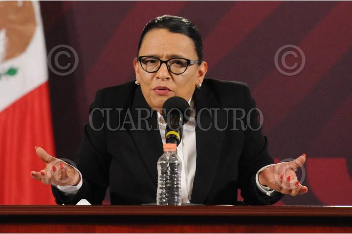 CIUDAD DE MÉXICO, 29MARZO2023.- Rosa Icela Rodríguez, titular de la SSPC, realizó una conferencia de prensa para informar sobre los avances en el caso de los 39 migrantes qué murieron en el incendio de una estación de migración. FOTO: DANIEL AUGUSTO /CUARTOSCURO.COM