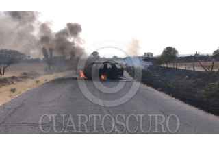 PÁNFILO NATERA, ZACATECAS, 29MARZO2023.- Tras un operativo de seguridad por parte de las fuerzas de seguridad estatal y federal en la región sur del Estado y en el que presuntamente fueron detenidos varías personas generadoras de violencia; personas vinculadas a grupos delincuenciales realizaron por lo menos diez bloqueos carreteros con carros y camiones incendiados, en las vías que conectan a los municipios de Pánfilo Natera, Villa Hidalgo, Pinos y Noria de Angeles. Hasta el momento la Secretaría de Seguridad Pública Estatal, ni la Fiscalía, han informado oficialmente del saldo en la región. FOTO: ESPECIAL /CUARTOSCURO.COM