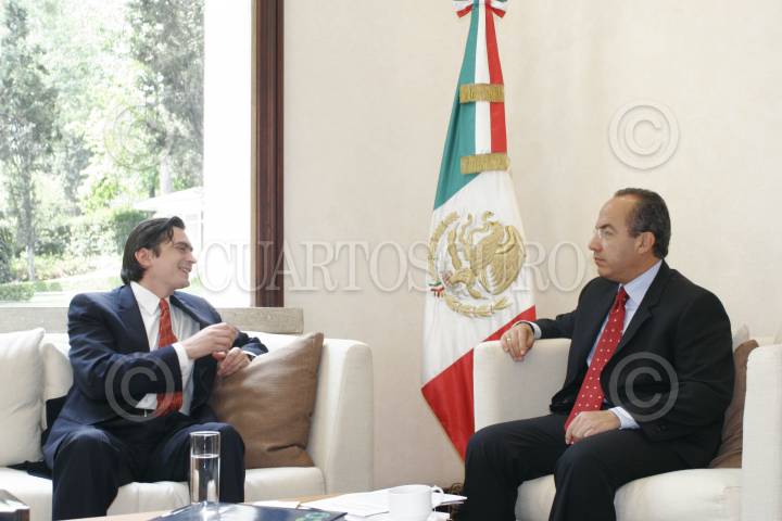 MÉXICO D.F. 02ABRIL2007.- El presidente Felipe Calderón recibio a Homero Aridjis Fuentes, representante permanente de la UNESCO en la presidencia oficial de los pinos. FOTO: ALFREDO GUERRERO/CUARTOSCURO.COM