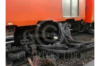 CIUDAD DE MÉXICO, 30MARZO2023.- Está mañana un convoy del STC Metro se descarriló en las vías de los Talleres Ticomán, previo a ingresar al andén de la estación Indios Verdes de la Línea 3, lo cual ocasionó retraso en el avance de los trenes. FOTO: CUARTOSCURO.COM