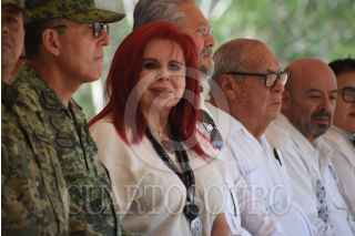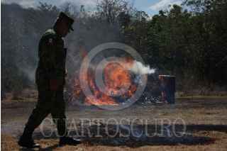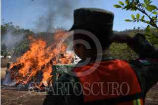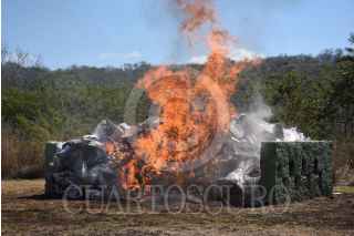 CAMPECHE, CAMPECHE, 30MARZO2023.- Más de media tonelada de narcóticos asegurados en distintos operativos de la ciudad fueron incinerados en el campo militar de la X Región Militar de la 33 /a Zona Militar, como parte de la aplicación del Plan Nacional de Paz y Seguridad 2018-20024 implementado por Gobierno de México; fueron 799 mil 960 unidades de cigarrillos de tabaco, 350 kilos 322 gramos de plantas de mariguanas, 131 kilos 659 gramos de mariguana, 32 kilos 567 gramos de cocaína y fenacetina, 386 gramos de metanfetamina, siendo un total de 514 kilos 933 gramos de narcóticos destruidos. En el lugar atestiguaron la incineración la Gobernadora del Estado, Layda Sansores San Román, Renato Sales Heredia, Fiscal del Estado, Marcela Muños Martínez, Secretaria de Seguridad Publica Y el comandante de la 33/a Militar Bernabe Bernardo Chavez. FOTO: MICHAEL BALAM/CUARTOSCURO.COM