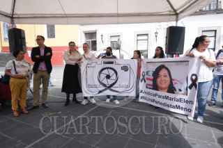 XALAPA, VERACRUZ, 30MARZO2023.- Este 30 de marzo se cumplieron tres años del asesinato de la reportera María Elena Ferral, su hija Fernanda De Luna Ferral dio a conocer que han sido detenidas siete personas por estar supuestamente involucrados en el crimen. Pero faltan tres más por ser aprehendidos al considerar que se tratarían de los autores intelectuales. En el tercer aniversario luctuoso se manifestó en la plaza Sebastián Lerdo de Tejada de la ciudad de Xalapa, donde detalló que el 01 de abril se celebrará una audiencia con cuatro de los sujetos vinculados a proceso. FOTO: YERANIA ROLÓN/CUARTOSCURO.COM