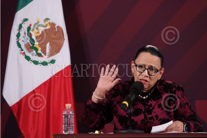 CIUDAD DE MÉXICO, 30MARZO2023.- Rosa Isela Rodríguez, secretaria de Seguridad Ciudadana, y Sara Irene Herrerías Guerra, titular de la Fiscalía Especializada en materia de Derechos Humanos, ofrecieron la segunda conferencia de prensa en Palacio Nacional para dar seguimiento sobre el caso de los 39 migrantes que fallecieron en un Centro de Instituto de Migración en Ciudad Juárez. FOTO: GRACIELA LÓPEZ /CUARTOSCURO.COM