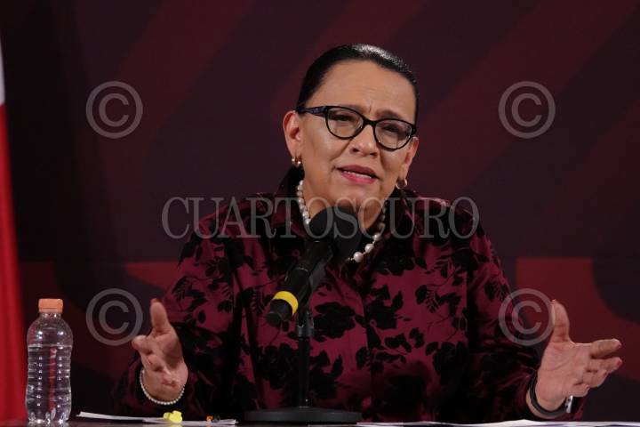 CIUDAD DE MÉXICO, 30MARZO2023.- Rosa Isela Rodríguez, secretaria de Seguridad Ciudadana, y Sara Irene Herrerías Guerra, titular de la Fiscalía Especializada en materia de Derechos Humanos, ofrecieron la segunda conferencia de prensa en Palacio Nacional para dar seguimiento sobre el caso de los 39 migrantes que fallecieron en un Centro de Instituto de Migración en Ciudad Juárez. FOTO: GRACIELA LÓPEZ /CUARTOSCURO.COM