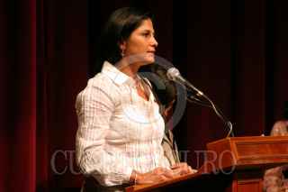 MÉXICO, D.F., 03ABRIL2007.- Miriam Cacho, hermana de la escritora Lydia Cacho, recibió el premio Coatlicue en nombre de la autora de Los Demonios del Edén, en el Teatro de la Ciudad. FOTO: MOISÉS PABLO/CUARTOSCURO.COM