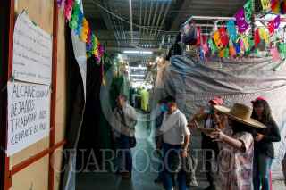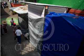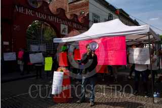 CIUDAD DE MÉXICO, 30MARZO2023.- Trabajadores del mercado de Artesanías de Coyoacán bloquearon los accesos al lugar, esto debido a una supuesta colocación de locales irregulares que irrumpen las normas de seguridad. FOTO: ROGELIO MORALES /CUARTOSCURO.COM