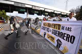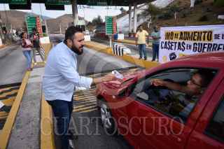 CHILPANCINGO, GUERRERO, 30MARZO2023.- En la caseta de Palo Blanco, militantes del PRD distribuyeron folletos contra el alza de las tarifas de peaje de la Autopista del Sol, convocando a la sociedad a sumarse al reclamo de que bajen cuanto antes. Los integrantes llegaron a la salida sur de Chilpancingo, encabezados por el presidente del Comité Ejecutivo Estatal (CEE) Alberto Catalán Bastida y el presidente del Consejo Estatal (CE) Mario Ruiz Valencia. En el mensaje distribuido entre los automovilistas, el PRD-GUERRERO señala que además de manifestarse, ha promovido un juicio de amparo que está por resolverse, con amplias posibilidades de que deje sin efecto el incremento autorizado por el Gobierno Federal. Señalan que mantener dicho incremento representa un golpe a la economía del estado de Guerrero, que depende fundamentalmente del turismo. Aunque la manifestación provocó el despliegue de personal de la Guardia Nacional, la actividad se desarrolló sin ningún problema. FOTO: DASSAEV TÉLLEZ ADAME/CUARTOSCURO.COM
