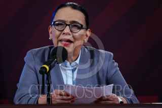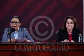 CIUDAD DE MÉXICO, 31MARZO2023.- Rosa Icela Rodrígue, secretaria de Seguridad Pública y Protección Ciudadan, y Sara Irene Herrerías Guerra, titular de la Fiscalía Especializada el materia de Derechos Humanos de la Fiscalía General de la República (FGR), encabezaron por tercer día la conferencia informativa del informe sobre el caso del incendio en la estación migratoria de Ciudad Juárez, Chihuahua, que cobró la vida de 40 personas en situación migrante. Las funcionarias destacaron que se identificaron irregularidades en los contratos de la empresa de seguridad privada y no serán cómplices de quienes causaron la tragedia. FOTO: GALO CAÑAS/CUARTOSCURO.COM