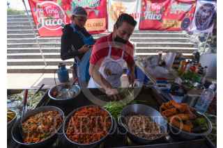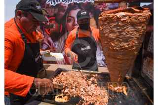 METEPEC, ESTADO DE MÉXICO, 31MARZO2023.- En Metepec se llevó a cabo la Feria del Taco como parte de la celebración del Día del Taco con una hora de tacos gratis, las largas filas no se hicieron esperar y los asistentes a El Calvario pudieron probar varios tipos de tacos desde los clásicos tacos al pastor, de birria, cecina, chorizo, dorados entre otros. FOTO: CRISANTA ESPINOSA AGUILAR /CUARTOSCURO.COM