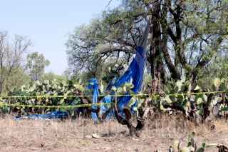 TEOTIHUACAN, ESTADO DE MÉXICO, 01ABRIL2023.- Muere un matrimonio al incendiarse cuando viajaban en un globo aerostático en los alrededores de las Pirámides de Teotihuacan. Su hija logra salvarse del fatal accidente. Policía estatal y Guardia Nacional acudieron al sitio para resguardar el sitio. FOTO: ROGELIO MORALES/CUARTOSCURO.CON